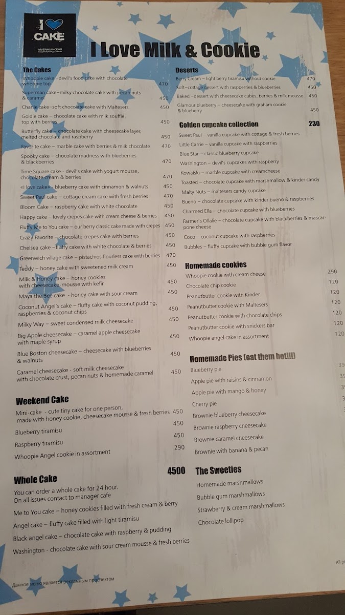 Variety of Cakes: Cakes range from 650-800 rubles, offering a balance of sweetness that isn’t overwhelming.
